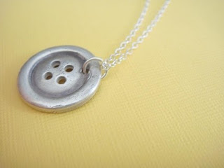Celebrities such as Christina Aguilera and Hilary Duff have been spotted wearing this "Cute as a Button" necklace by White Trash Charms. It retails for approximately $130. Here's a similar look for less in Silver on Etsy for just $35. Here's where you can get it: